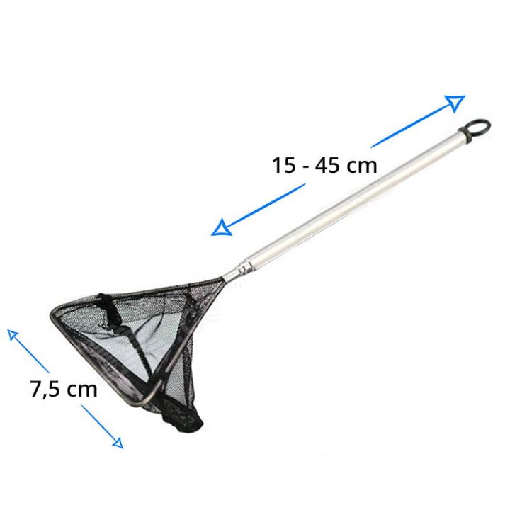 Liya Teleskopik Karides Kepçesi, kapalı konumda 15cm’lik bir sap uzunluğuna sahiptir ve çekildiğinde 45cm’e kadar uzayabilir. Böylece akvaryum içinde erişim kolaylığı sağlar. Karidesler saklanmayı seven canlılar olduğundan üçgen şeklindeki kepçe ile saklanma alanlarına kolayca sokulabilir. Kepçenin ağzı 7,5cm genişliğe sahiptir. Sapın ucundaki bulunan halkadan asabilir ve tankınızın mobilyasındaki diğer bakım araçlarınızın yanında yerini alabilir. 304 kalitede paslanmaz çelikten üretilmiştir.